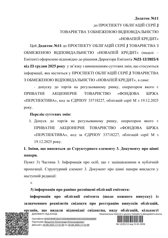 ПропозиціїПро компаніюМапа інвестораКабінет інвестораЗастосунок UNIVERДодаток 13 до Проспекту облігацій НоваПей Кредит серії B (розміщено 22-01-2026)Завантажити документЗавантажити архів