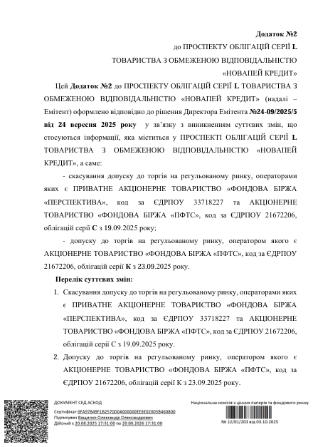 ПропозиціїПро компаніюМапа інвестораКабінет інвестораЗастосунок UNIVERДодаток 2 до Проспекту облігацій НоваПей Кредит серії L (розміщено 06-10-2025)Завантажити документЗавантажити архів
