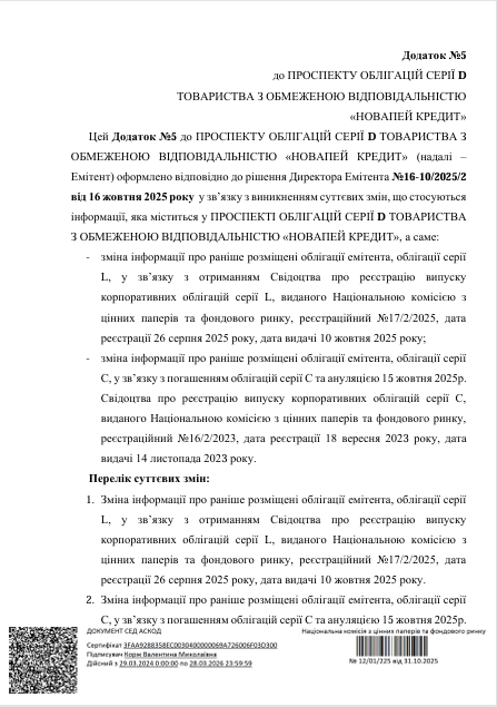 ПропозиціїПро компаніюМапа інвестораКабінет інвестораЗастосунок UNIVERДодаток 5 до Проспекту облігацій НоваПей Кредит серії D (розміщено 03-11-2025)Завантажити документЗавантажити архів