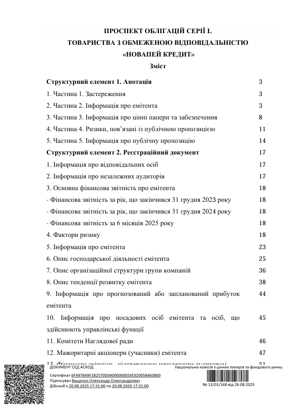 ПропозиціїПро компаніюМапа інвестораКабінет інвестораЗастосунок UNIVERПроспект облігацій НоваПей Кредит серії L (розміщено 27-08-2025)Завантажити документЗавантажити архів