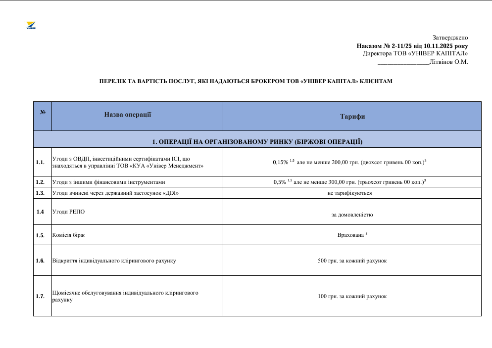 ПропозиціїПро компаніюМапа інвестораКабінет інвестораЗастосунок UNIVERТарифи ГД 10.11.2025 набрання чинності з 17.11 (аріхв)Завантажити документЗавантажити архів